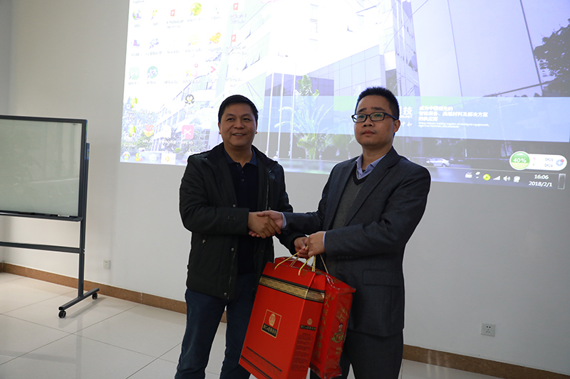 座談會上,黃樂瑜書記介紹了松山湖2017年黨組織情況,分析了園區過去一年的喜人業績,以及2018年工作規劃,同時對正業科技作為園區內具有知名度的上市公司,對其黨支部的2018年黨建工作寄予殷切厚望,為黨員職工送上慰問禮品,在寒冷的冬季為企業基層黨員送來熱情的節日問候。